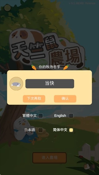 1、首先,先给你的牧场取一个独特又悦耳的名字,开启你的天竺鼠庄园生活吧!