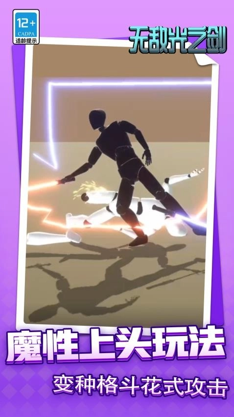 无敌光之剑是一款超爽的对战闯关小游戏!游戏里,玩家能自由绘制光剑,施展火焰、闪电等招式斩杀敌人。战斗时带有短暂无敌效果,不用担心被揍,还可以解锁各种花式机器人装扮。关卡主题丰富多样,只要找到敌人弱点再出手就能轻松获胜,光剑特效更是炫酷炸裂。操作简单又过瘾,奖励拿到手软,没事玩上两局特别解压!