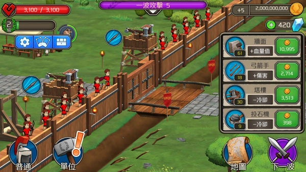 3.成功消灭入侵的敌人后,你将获得丰厚的奖励。利用这些奖励,不仅能增强城防的防御能力,还可以提升士兵的等级。