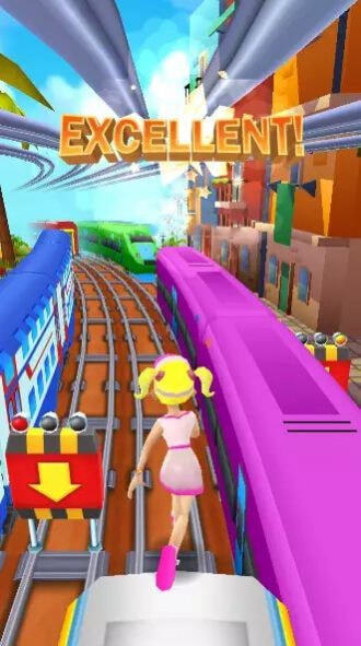 4、超精彩有趣的跑酷玩法,和地铁跑酷类似,玩家需要不断向前狂奔,收集沿途的金币与道具;