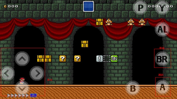 7、此时,“A”键对应跳跃动作,“BR”键用于发射操作,接下来就可以开启马里奥的闯关之旅啦!