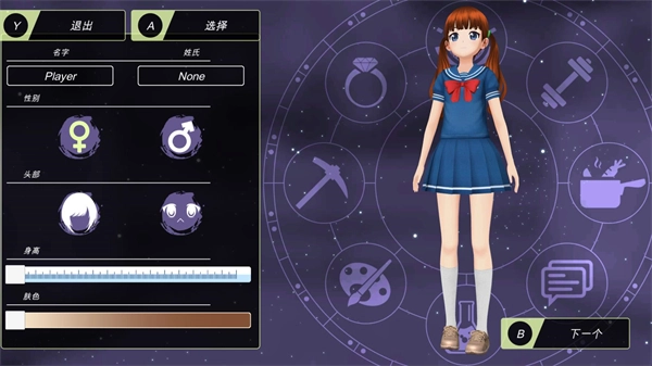 3、确定好难度后,就能够创建自己的角色了,你可以挑选不同的发型与肤色。