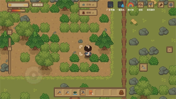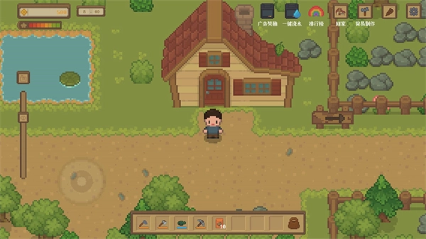 4、在农场中运用各类道具来开垦土地,在探索的过程里能获取形形色色的材料。