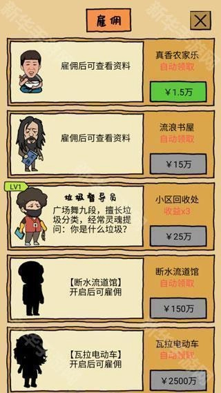 你是什么垃圾让玩家能够在游戏中,通过回收垃圾的方式赚取人生的第一桶金,并走向人生巅峰。丰富的游戏内容等你来体验,让游戏充满了新鲜感,感受游戏的魅力。
