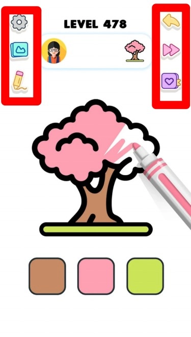1.界面左右两侧设有各类功能按钮,涵盖设置、图库、画笔以及撤回等操作选项,玩家能够随时进行调整,便捷地完成涂色创作并保存成果。