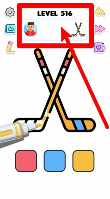 2.关卡展示区域会清晰标明当前的等级以及任务图案,像冰球棍的造型就是其中一个例子,玩家需要依据这些提示来完成相应的上色挑战任务。