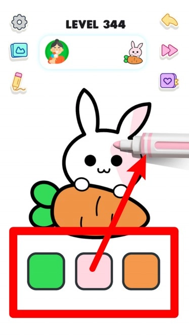 3.上色界面配备了丰富的色彩选择,玩家能够自主挑选颜色,为小兔子与胡萝卜进行涂色,使画面变得更为鲜活、俏皮,充满创作的趣味。