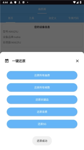 4、完成所有选择后,修改就成功了,重启设备即可完成整个修改流程;若想恢复原来的设置,在软件首页点击“还原”按钮就能实现。