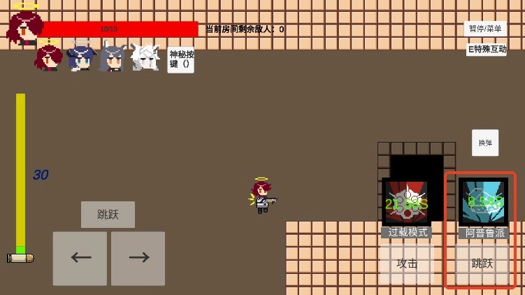 1、通过左下方区域控制角色移动,基础操作包含方向键与跳跃功能,不同角色各自具备2个独特的特殊技能。
