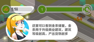 这里是您的金条储备展示区域。这些金条可用于升级商业设施,等级越高,货物的产出效率也会显著提高。