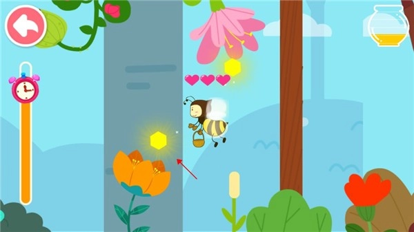 小蜜蜂饿得不行啦,宝宝快带它去找点吃的吧!要注意哦,前面有陷阱,宝宝赶紧滑动手指,控制小蜜蜂的飞行方向,太棒啦,成功吃到食物啦!