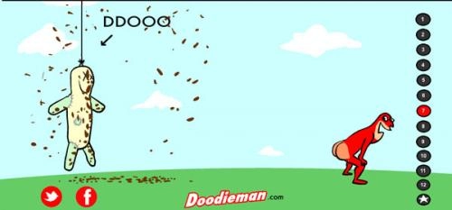 3、完成设置后,点击右侧标有1-12的按钮,玩家就能操控大便超人对人偶释放大便攻击。