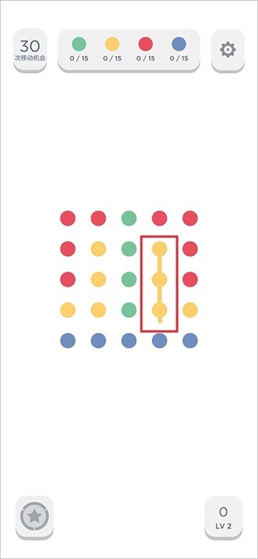 1、进入后,每个关卡都设有过关条件,比如需要在30步内消除规定数量的点点。
