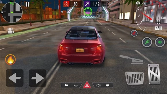 4.比赛时,通过屏幕左侧的按钮来操控车辆转向,右侧的按钮用于控制加速与刹车,按照地图上的目标要求完成相应挑战。