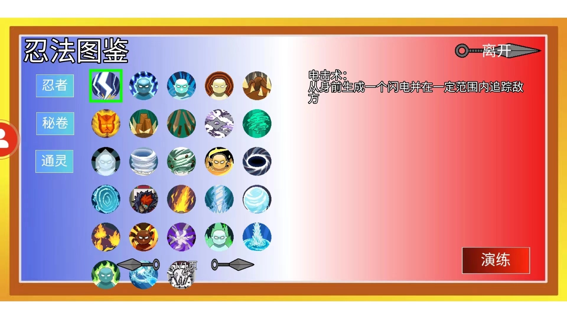 3、进入【图鉴】界面后,我们能够查看每个忍者的技能属性,还有秘卷和通灵的相关说明。