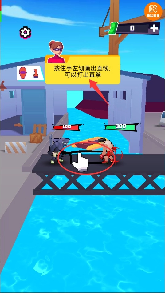 1、开局要快速熟悉画线操作,通过向不同方向划动屏幕来发动连招,掌握基础的拳脚组合,以此压制对手的进攻节奏。