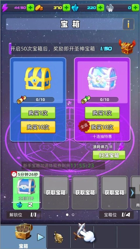 3、完成关卡挑战可获取宝箱,开启宝箱能得到钻石、金币等资源。