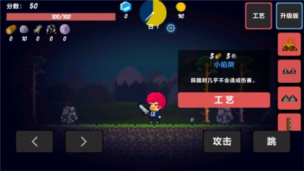 像素生存者沿用了经典的固定按键操作模式,左右按键能控制主角移动,屏幕右侧设有攻击、跳跃等按键,整体操作过程简单易上手,相信它会陪伴你度过每一天。