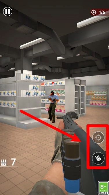 1.点击右侧的瞄准按钮,能精准锁定敌人的位置,提升射击效率并防止误伤,适用于突袭场景下快速清除威胁。