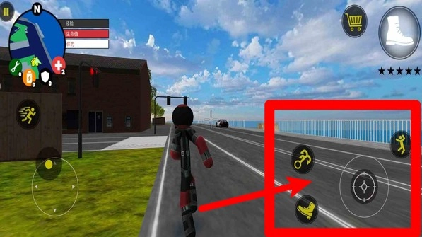1.右侧操作区域配备瞄准摇杆和功能按键,可实现抓钩机动、快速登车及滑行冲刺等操作,拖动准星就能完成精准锁定与射击动作。