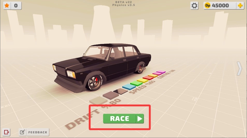 2、回到主界面后点击那个带有闪烁轮胎印的“开始”按钮,新手教程要强制完成一遍,不要跳过。另外记得关闭自动刹车功能,这样才能进行漂移操作。