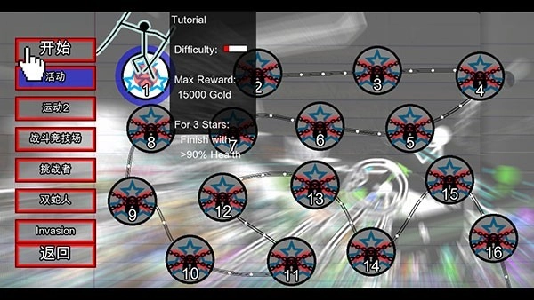 1、点击主界面的【开始】按钮,挑选你想要挑战的关卡并进入,关卡需逐步解锁,玩家得分越高,获得的评分也会越高。