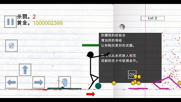1,操作异常简单,仅需使用屏幕左下角的移动摇杆。每次格斗都是我们的火柴人与另一个火柴人对战。