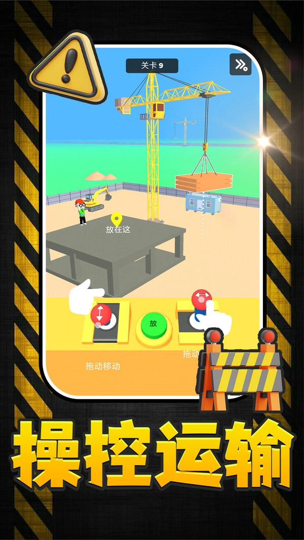 1.顶部区域设有关卡编号、快进按钮以及施工警示标识,可用于查看当前关卡信息,还能随时调整播放速度。