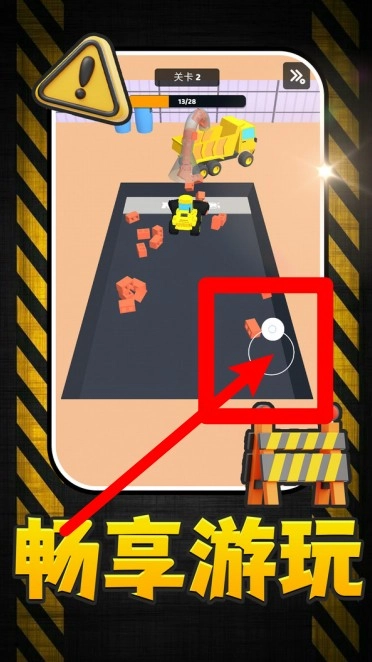 3.屏幕右下角的虚拟摇杆是控制车辆移动的主要方式,通过拖动它可以精准操控车辆收集砖块,并将砖块运送至指定的目标区域,从而完成当前的收集任务。