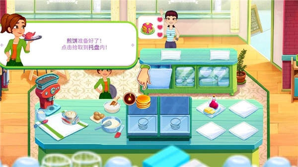 2、煎饼做好了,点击煎饼放进托盘。