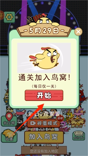 1、进入主界面后,点击“加入鸟窝”按钮,系统会跳转到地区选择页面。