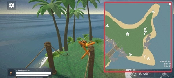 6、借助跳跃动作快速抵达另一座小岛,获取新的图案或身体部位,你也可以点击右上角的地图查看自身所在位置,接下来就继续寻找新的四肢来创造生物吧。