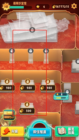 6、拖动时你会发现界面中上方还有一大块未解锁的区域,这就需要玩家逐步升级来解锁了。