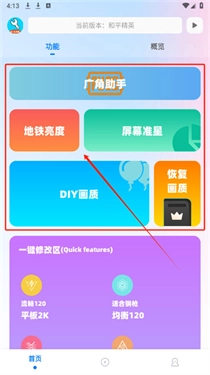 3、进入首页后,广角助手、地铁亮度、屏幕准心等超多实用功能便会清晰呈现。