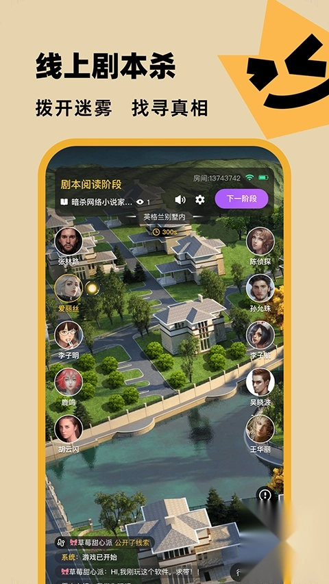 1. 剧本与角色选择:玩家进入后,可挑选自己感兴趣的剧本,每个剧本都配备了不同的角色,供玩家自主选择。