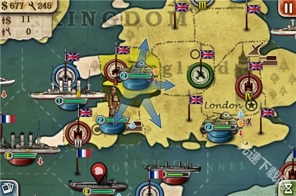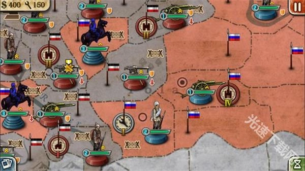 • 坦克:作为军队里的超级武器,坦克不仅攻击力和生命值都相当高,而且在消灭一个目标单位后还能继续发起攻击,同时它不受战壕阻碍,也具备反击大炮的能力。不过它有个唯一的缺点,就是造价十分昂贵。另外,坦克的移动力是2,并且只能在三级工业区进行生产。