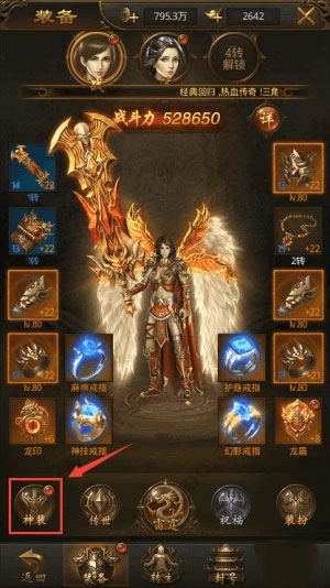 3、高级神装、绚丽羽翼、稀世称号、酷炫技能与传世神威,以及各类独立的个性系统,皆由你亲手定义。