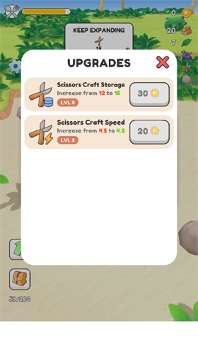 4、还能对砍伐速度等进行升级,来建造属于你的岛屿吧。