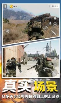 1、玩家将化身为一名出色的狙击手,游戏采用更写实的画风,设有一系列富有挑战性的任务关卡。