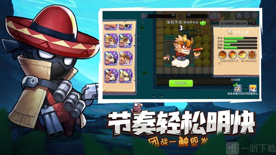 开黑仅需5分钟:轻松幽默的2D卡通画风,简单易上手,高度自由的战斗,灵活飘逸的走位,带给你停不下来的全新体验!