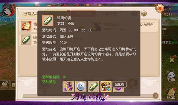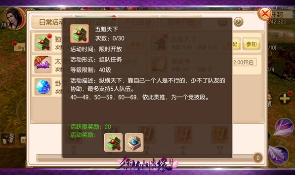 角色等级达到40级,组队任务,每天30次。
