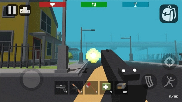 在城镇、森林、沙漠等多种生物群系的地图里自由探索,搜寻商店、车辆、房屋中的补给物资,还能驾驶发现的汽车快速移动并碾压僵尸。