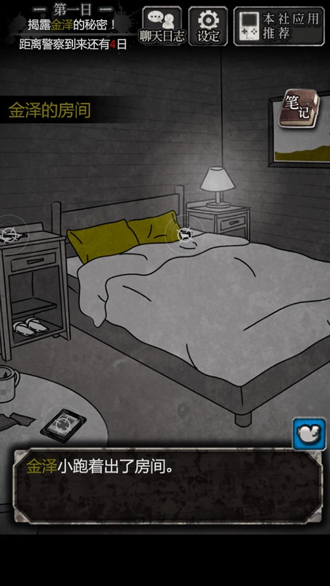 3、前往三楼金泽的房间并与金泽对话,触发“可以查看金泽的房间了”这一进程。