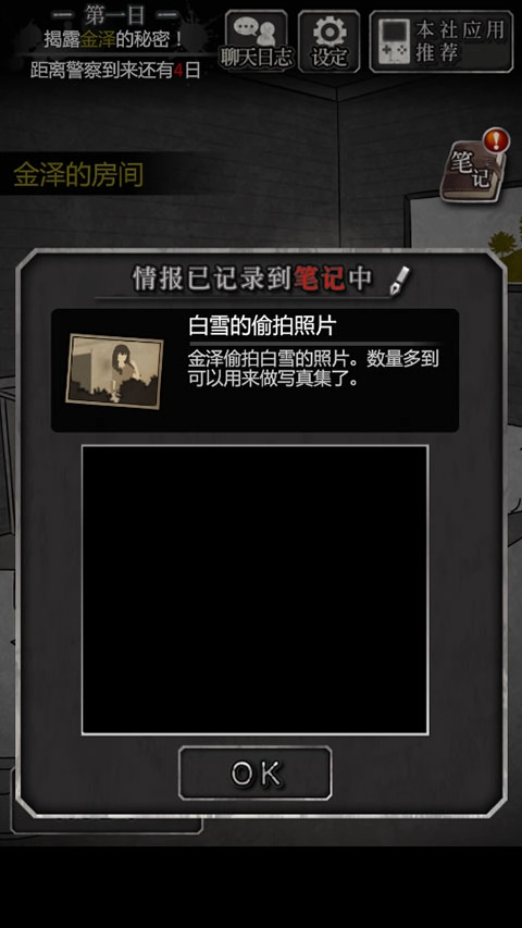 5、调查左上书桌,获得证物“金泽的日记本”;