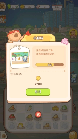 2、完成右上角的小目标任务,每个任务都能获得金币奖励