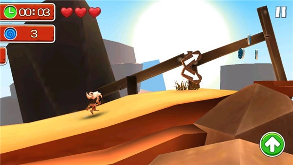 玩家只需点击主界面中央的红色三角形,就能进入新的场景与关卡,这些内容正等待着玩家去解锁探索。游戏要求玩家在限定时间内完成任务,若未能达成目标,就必须重新开始挑战。每一关都藏有三枚红色硬币,只有全部收集完毕,才能获得剩余的一颗星。游戏玩法简单直观,搭配3D动画场景与轻快活泼的背景音乐,让玩家能够沉浸在北美西部的独特风情之中。