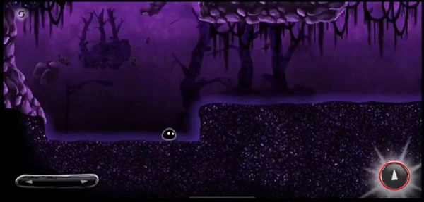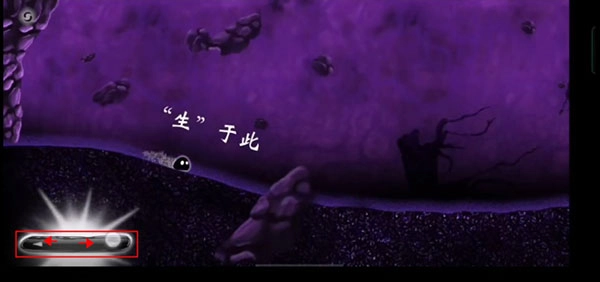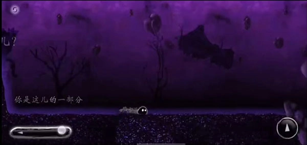 4、我们看到一个小毛球来到一处极其昏暗的地方,左边有左右方向键,我们便向前行进。