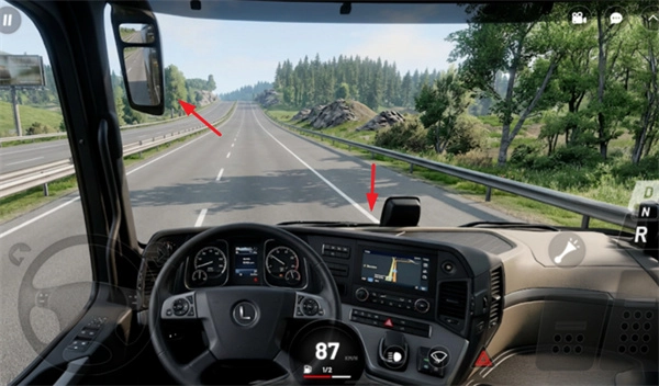 3、时刻借助车辆的后视镜留意周边车辆,只要记住抵达指定地点,就能完成全部运输任务。