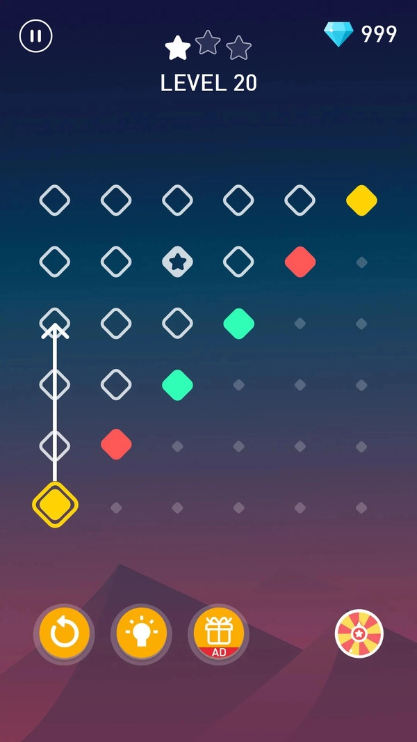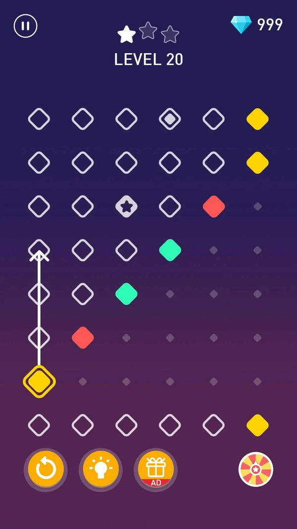 在某个关卡里,那些小点有着不同的颜色。而颜色相同的小点,需要用手指滑动来把它们连接起来。在光子连接这个游戏中,玩家得依据各个颜色小点的位置来进行连线操作。