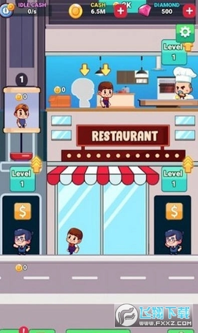 2、制定策略并决定升级建筑物,这是一款离线经营类游戏,玩家可管理自己的餐厅,通过自动化工作流程来增加闲置金币收益。